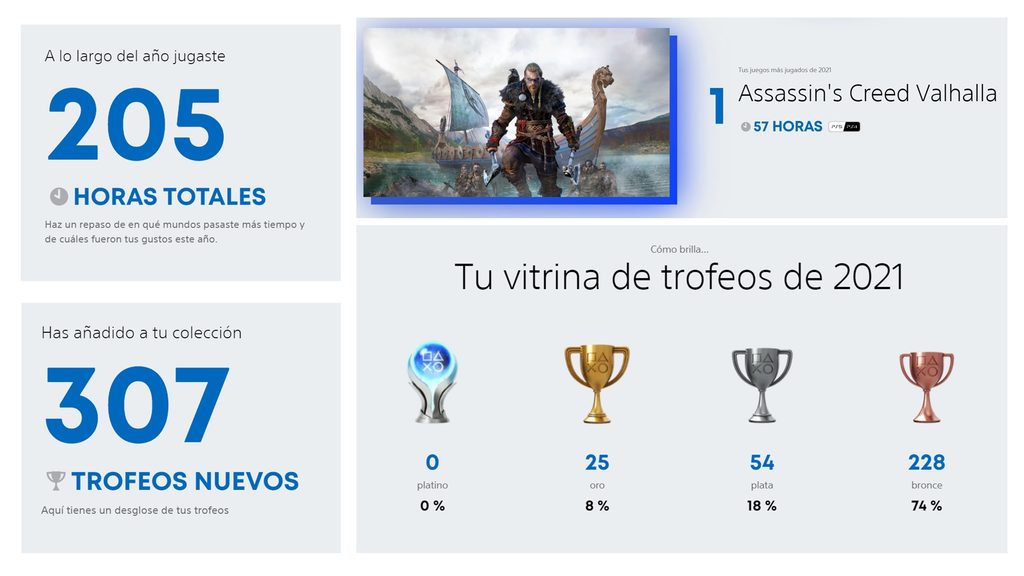 A partir de hoy, y hasta el 20 de febrero, los usuarios de PS4 y PS5* podrán consultar y compartir su Resumen PlayStation 2021, que incluye datos como el número de títulos a los que has jugado, tus géneros favoritos, los trofeos que has desbloqueado, tus tiempos de juego en títulos de PS4 y PS5, y mucho más.