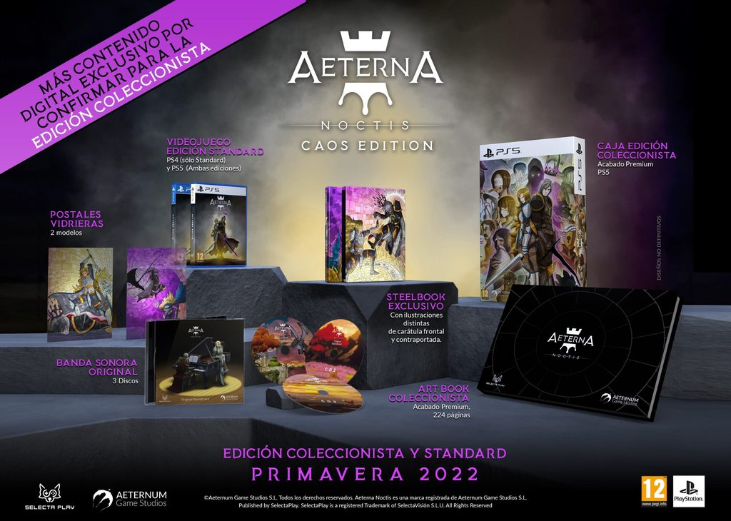 De la mano de Selecta Play, la rama de videojuegos de la distribuidora audiovisual SelectaVisión, y Aeternum Game Studios, nos alegra comunicaros que ya están abiertas las reservas para las ediciones físicas de Aeterna Noctis.