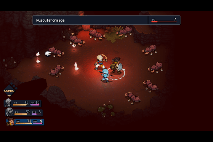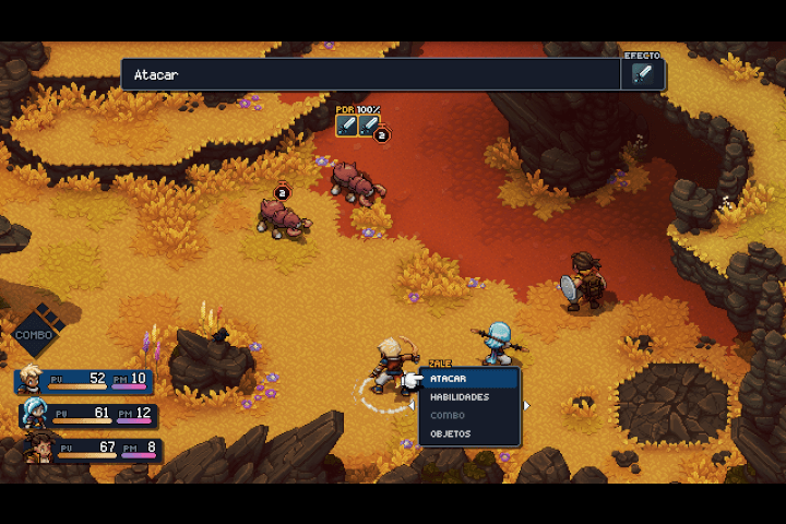 Pero si en lo visual es un cascada de estímulos para el jugador de siempre y el de hoy, en lo jugable, Sea of Stars sabe también cómo dar lo mejor a ambos tipos de público. En Sabotage Studio han sabido entender qué elementos de siempre debían permanecer y cuáles debían ser mejorados en pos de crear una aventura absorbente e inolvidable. Los combates, por ejemplo, son por turnos, pero no mediante un sistema que implique dar un comando y olvidarse, no. Aquí tenemos que estar todo el rato pendientes de la pantalla gracias a pequeñas interacciones que nos darán ventajas. La más obvia es la defensa: todos los ataques enemigos se pueden bloquear para recibir menos puntos de daño mediante una pulsación del botón X, pero esa pulsación hay que hacerla en el momento justo, casi como si de un parry se tratara. Lo mismo pasa con muchos ataques físicos o mágicos, que nos obligan a prestar atención para realizar determinadas acciones si queremos que hagan todo el daño que se les supone. Un mismo ataque, por ejemplo, podríamos hacerlo rebotar repetidas veces para aumentar su daño.