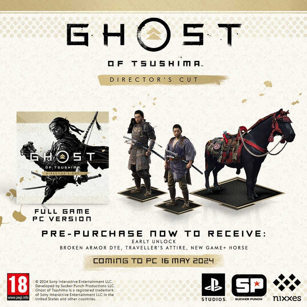 En nombre de todos los que formamos Nixxes Software y Sucker Punch Productions, ¡estamos impacientes por llevar Ghost of Tsushima Director’s Cut a PC! Podremos ofreceros más información, así como los requisitos del sistema, a medida que nos acerquemos al día de su lanzamiento, el 16 de mayo.