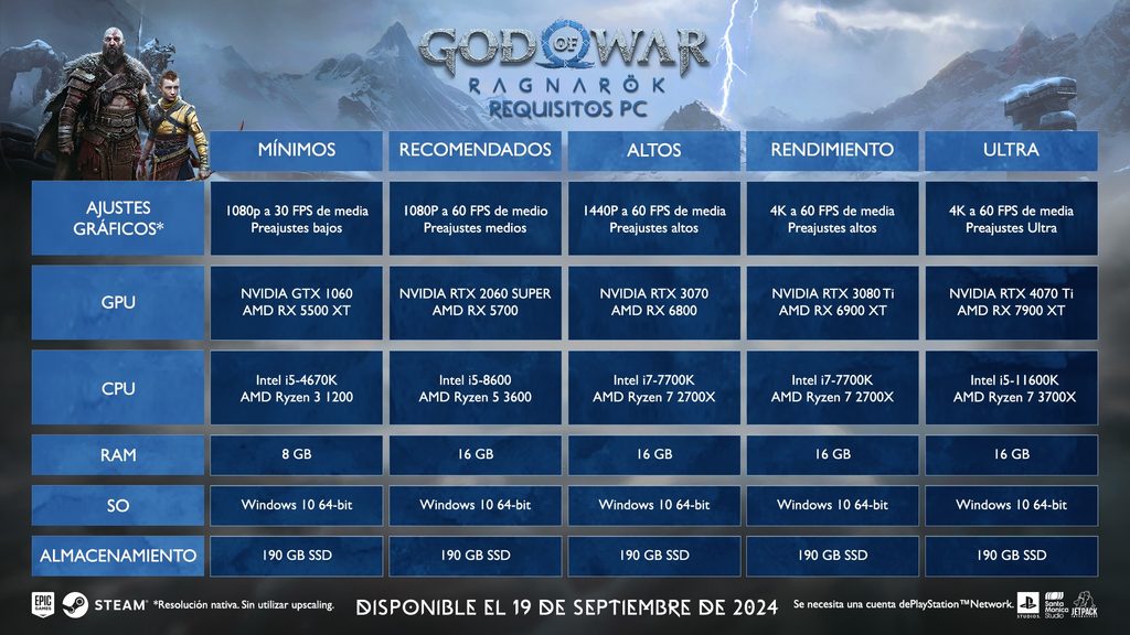 REQUISITOS DEL SISTEMA PARA GOD OF WAR RAGNARÖK EN PC