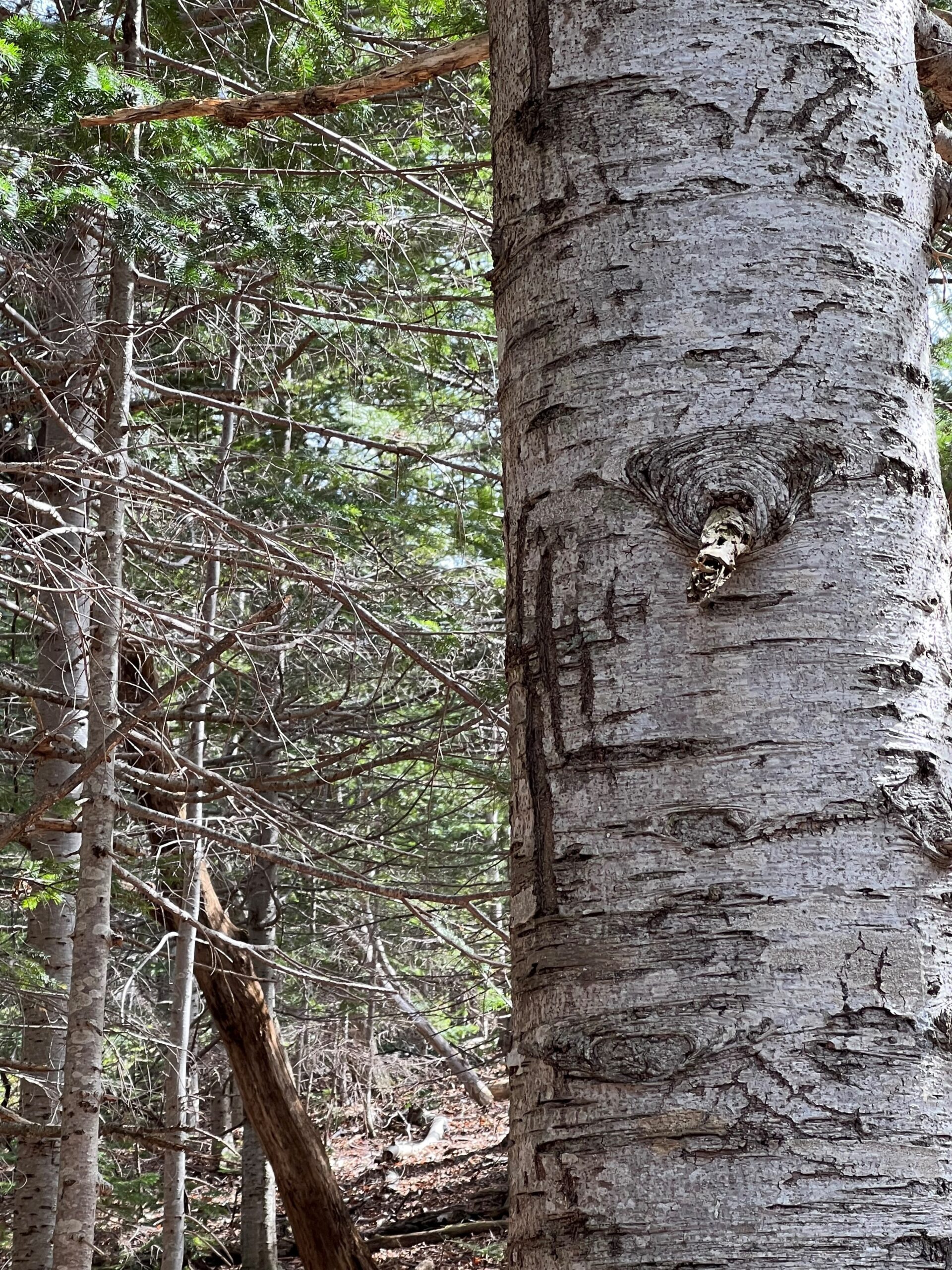 (¿Veis las marcas de garras en el árbol?  ¿Acamparíais en ese bosque?).