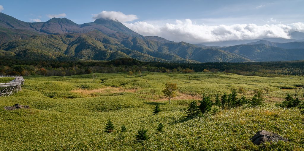 (Monte Yōtei, tan alto que se cuela entre las nubes).
